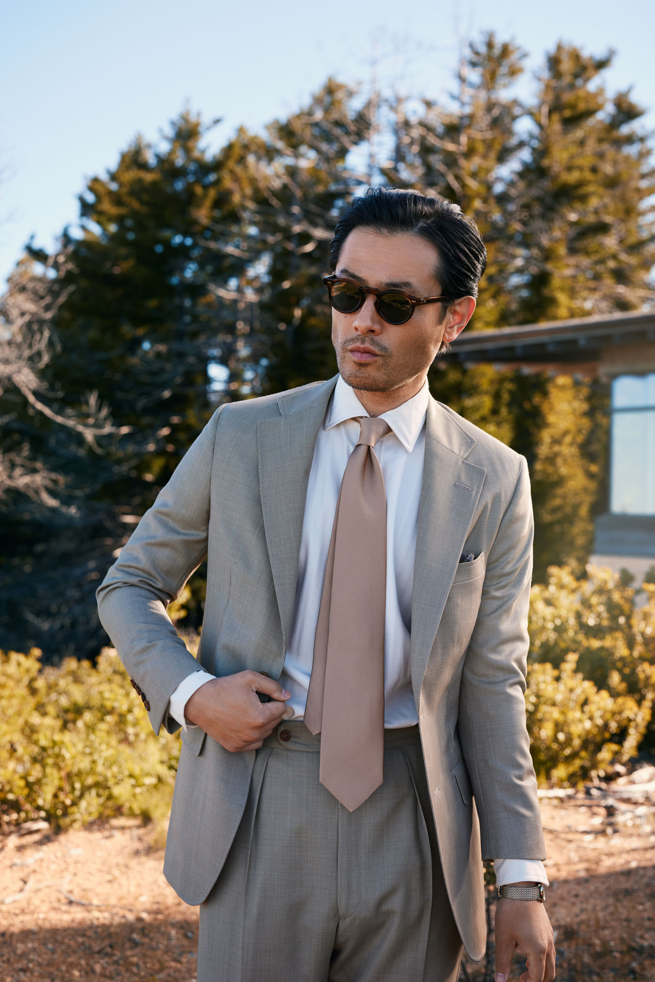 Custom Tan Birdseye Suit