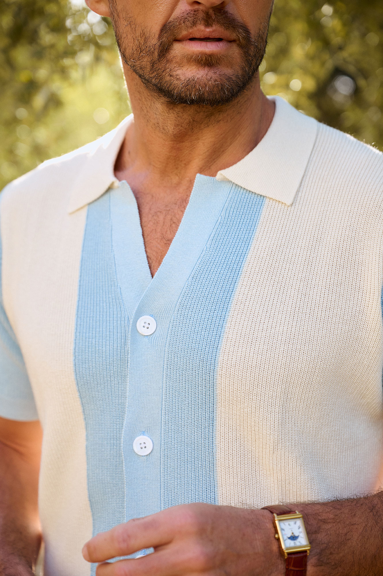 Color Blocked Knit Polo