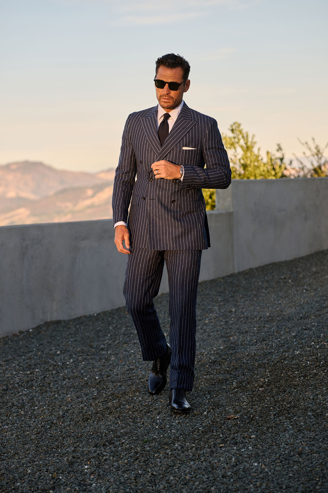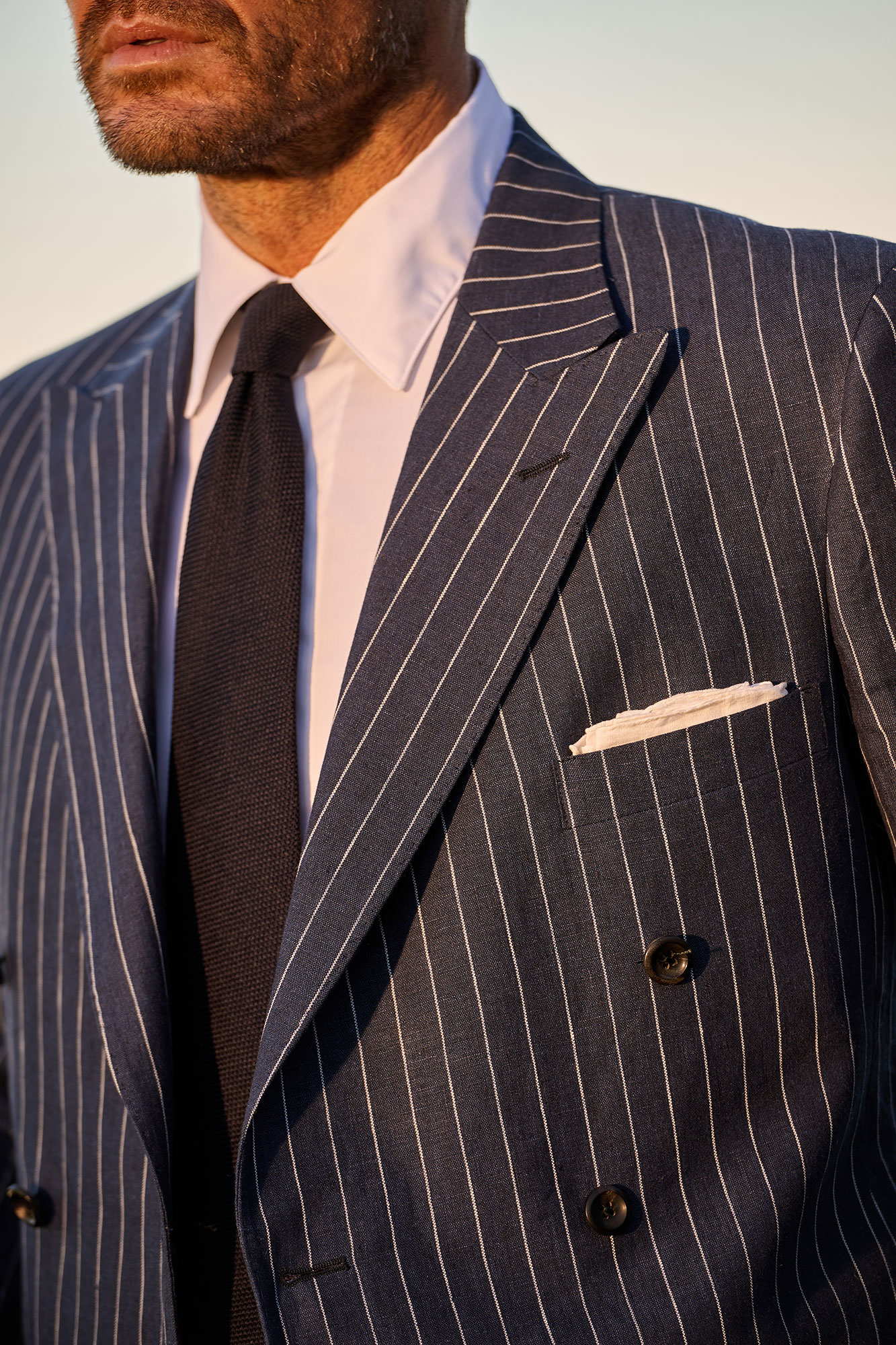 Navy Pinstripe Linen Suit